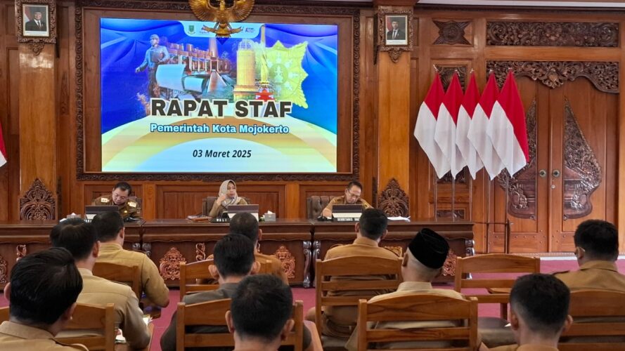 Mojokerto (transversalmedia) – Wali Kota Mojokerto, Ika Puspitasari SE dalam program 100 hari kerjanya. Hari pertama kerjanya, Wali Kota yang dilantik tanggal 20 Februari 2025 ini, melaksanakan rapat staf di lingkup Pemerintah kota Mojokerto.