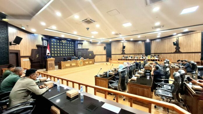 Mojokerto (transversalmedia) – Wakil Wali Kota Mojokerto, Dr. Rachmad Sidharta Arisandi, S.IP., M.Si menyampaian Jawaban / Tanggapan Wali Kota Mojokerto Atas Pemandangan Umum Fraksi-Fraksi DPRD Terhadap 3 Rancangan Peraturan Daerah Kota Mojokerto Tahun 2025. Di ruang rapat paripurna kantor DPRD kota Mojokerto, jalan Surodinawan. Senin (3/11/2025).
