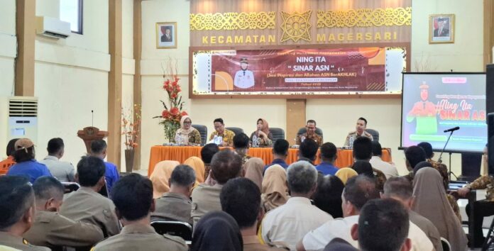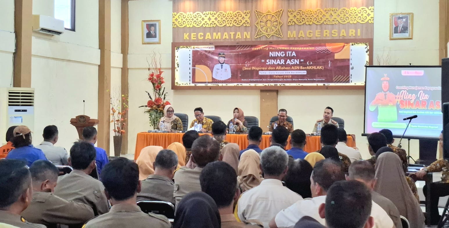 “Salah satu pengembangan kompetensi ASN dapat dilakukan melalui kegiatan coaching, mentoring, dan konseling”, katanya saat memberikan laporan di aula Kecamatan Magersari. Kamis (4/12/2025).