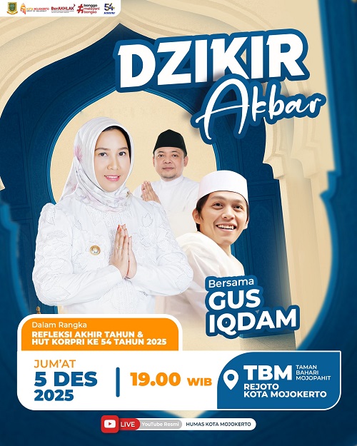 Mojokerto (transversalmedia) – Pemerintah Kota (Pemkot) Mojokerto menggelar berbagai event dan kegiatan yang menarik. Salah satunya adalah pengajian Dzikir Akbar bersama KH Agus Muhammad Iqdam Kholid atau Gus Iqdam dari Kabupaten Blitar.