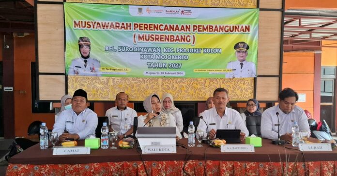 Mojokerto (transversalmedia) – Kelurahan Surodinawan menyelenggarakan musyawarah perencanaan pembangunan (Musrenbang) tingkat kelurahan tahun 2027. Pelaksanaan kegiatan ini merupakan kegiatan rutin tahunan di kelurahan Surodinawan, kecamatan Prajuritkulon, kota Mojokerto. Rabu (4/2/2026).