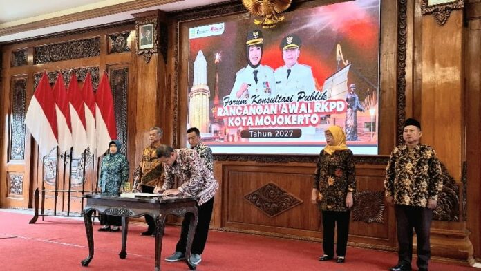 Mojokerto (transversalmedia) – Pemerintah Kota Mojokerto menggelar Forum Konsultasi Publik Rancangan Awal (Ranwal) Rencana Kerja Pemerintah Daerah (RKPD) Tahun 2027 di Ruang Sabha Mandala Madya, Balaikota Mojokerto, Jumat (20/2). Forum ini menjadi instrumen vital dalam menjaring aspirasi masyarakat demi memastikan arah pembangunan yang tepat sasaran.