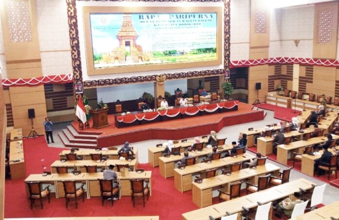 Mojokerto (transversalmedia) – Terkait raperda inisiatif DPRD, DPRD Kabupaten Mojokerto menggelar rapat paripurna dengan agenda penyampaian pandangan umum Bupati Mojokerto terhadap 4 (empat) raperda ini.